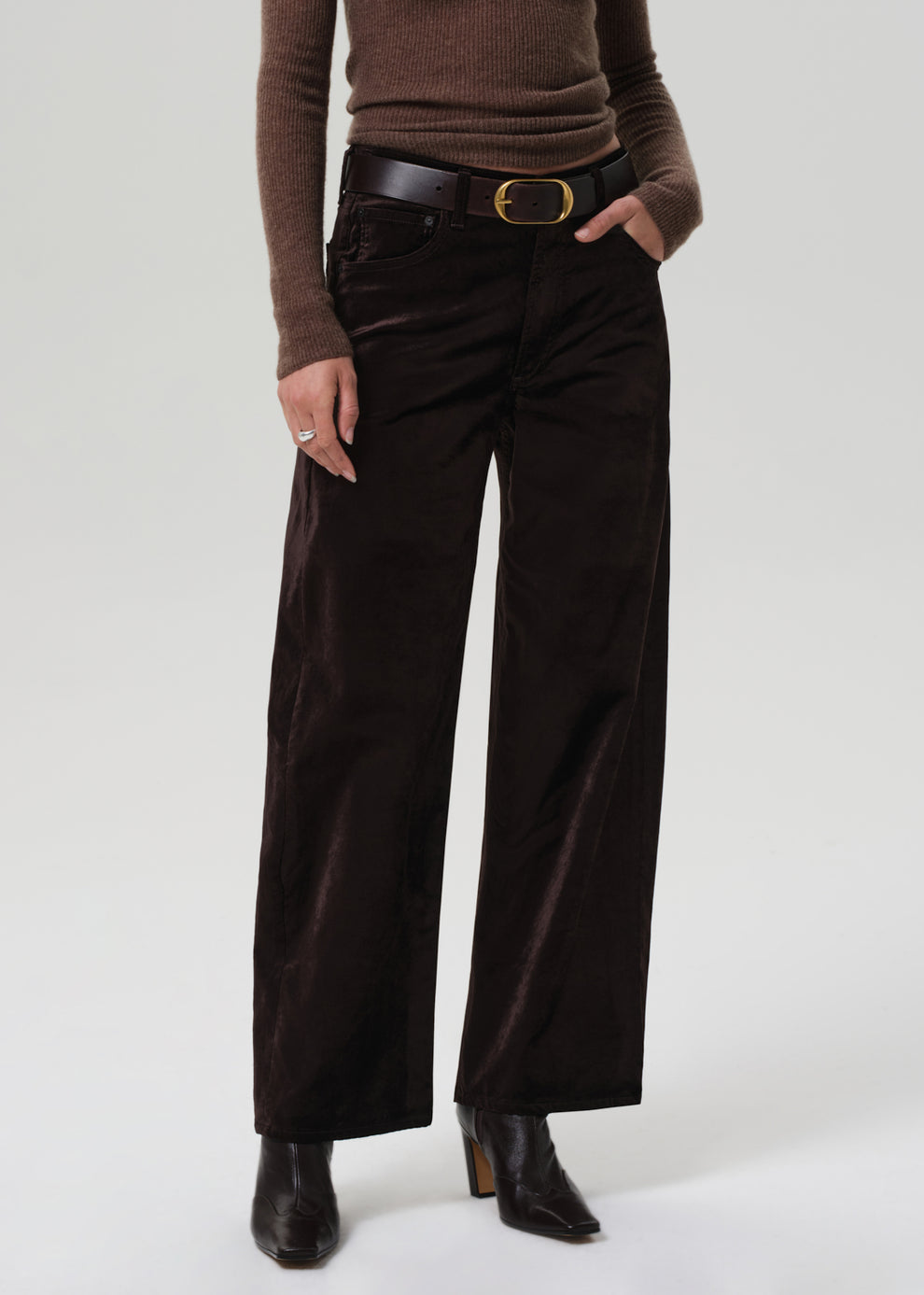 The ‘Ayla’ offers a refined take on the baggy silhouette with a relaxed fit that sits away from the body while maintaining a clean, intentional shape. This version is cut from ultra-soft stretch velvet with a smooth, polished finish in a deep espresso brown. Style effortlessly with everything from crisp shirting to slim knits.