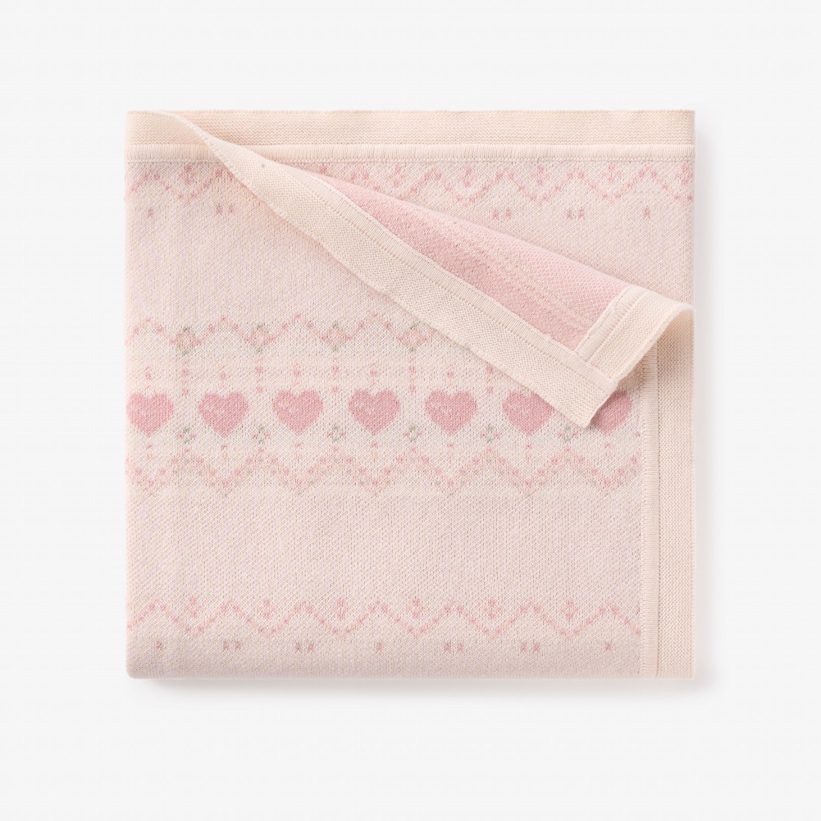 Wrap your little one in warmth and love. This soft knit blanket features a delicate Fairisle pattern in pale blush and ivory—woven with hearts and heritage. Whether for winter snuggles or everyday comfort, it's designed to be a cherished keepsake for your sweetest love, all year long.