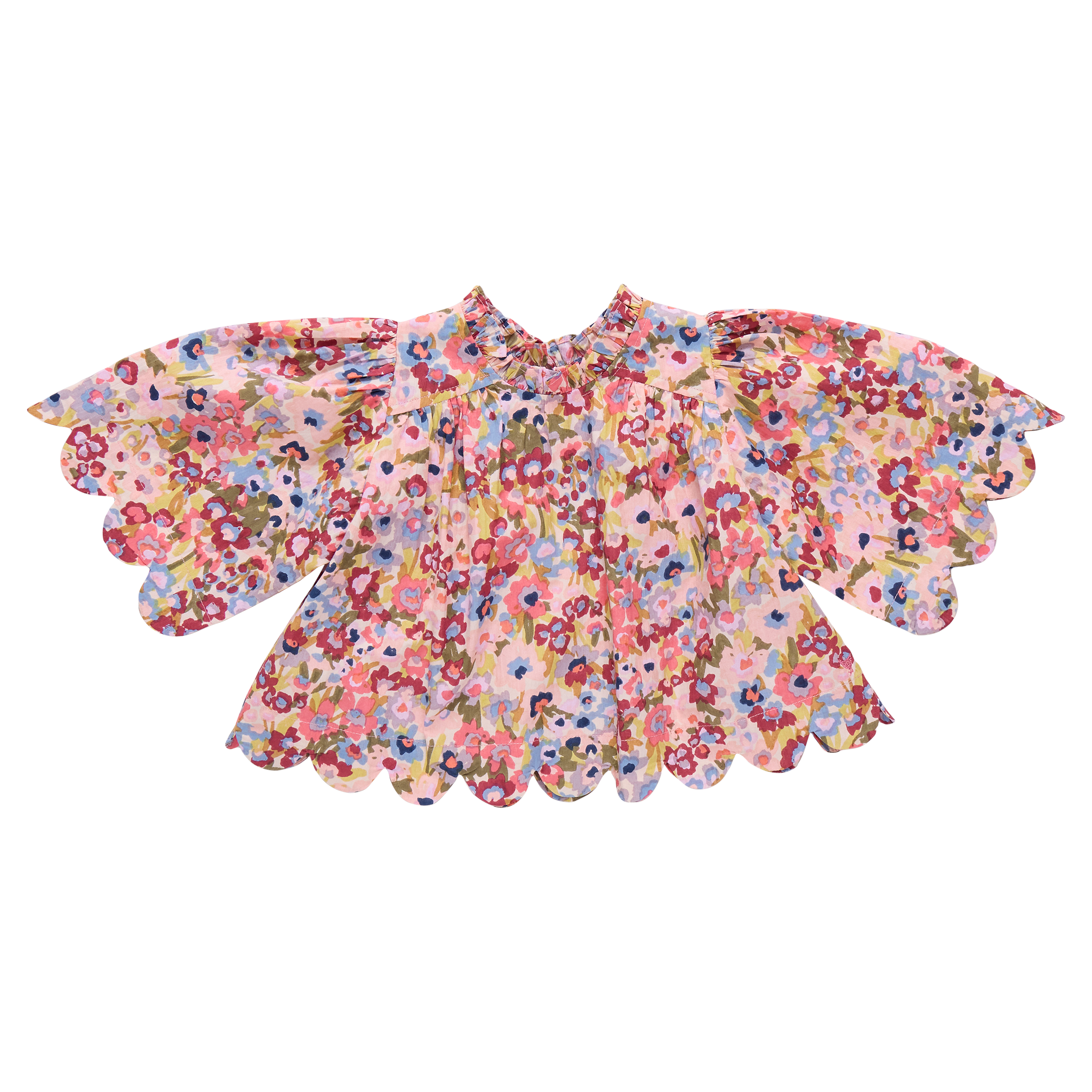The Girls Scallop Misha Top is a statement blouse designed with a scalloped hem and sleeves for a soft, feminine finish. Crafted in cotton poplin with an invisible zipper, the burgundy sketched floral print adds richness and charm to spring wardrobes.