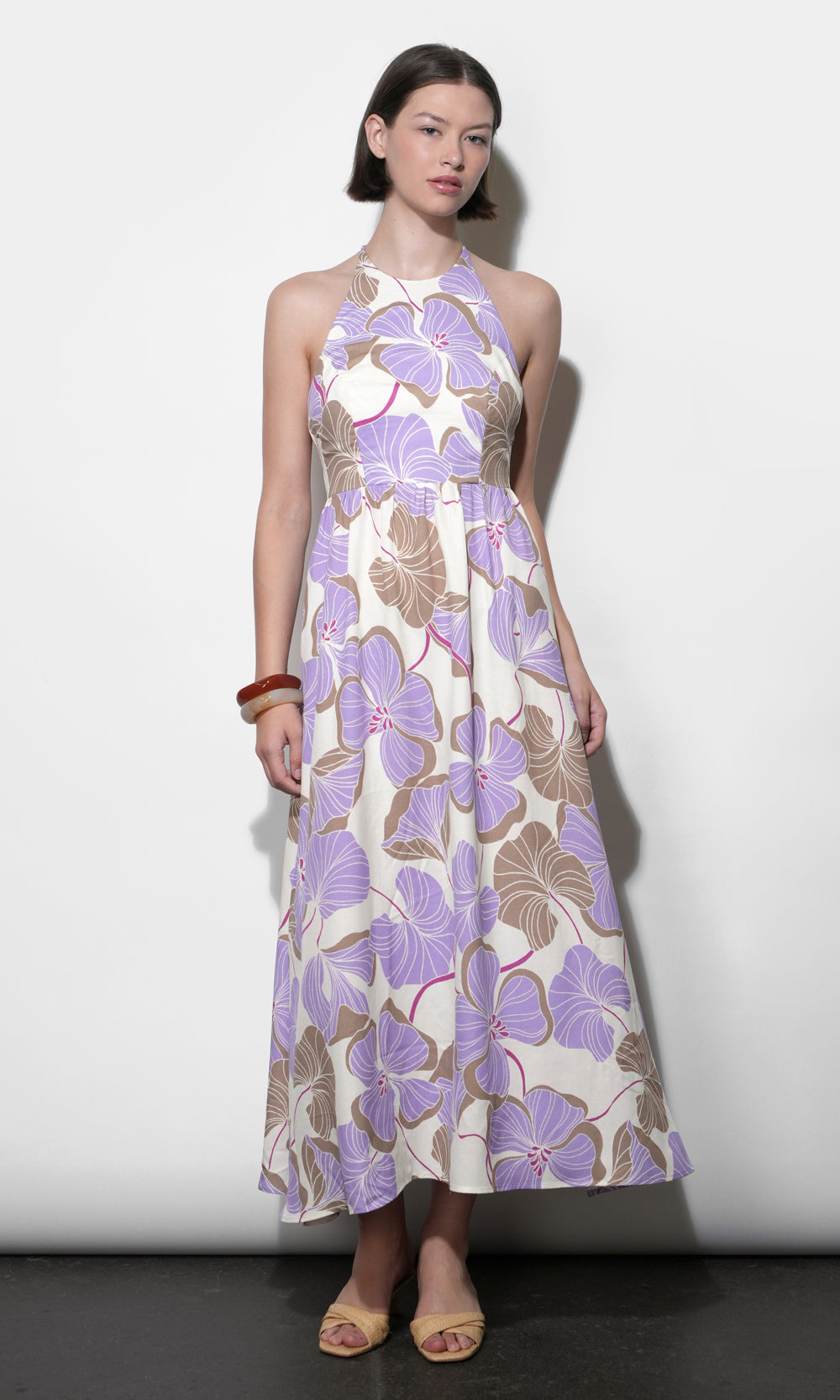 Greylin Ayla Braided Halter Strap Maxi Dress in Cream/Lilac