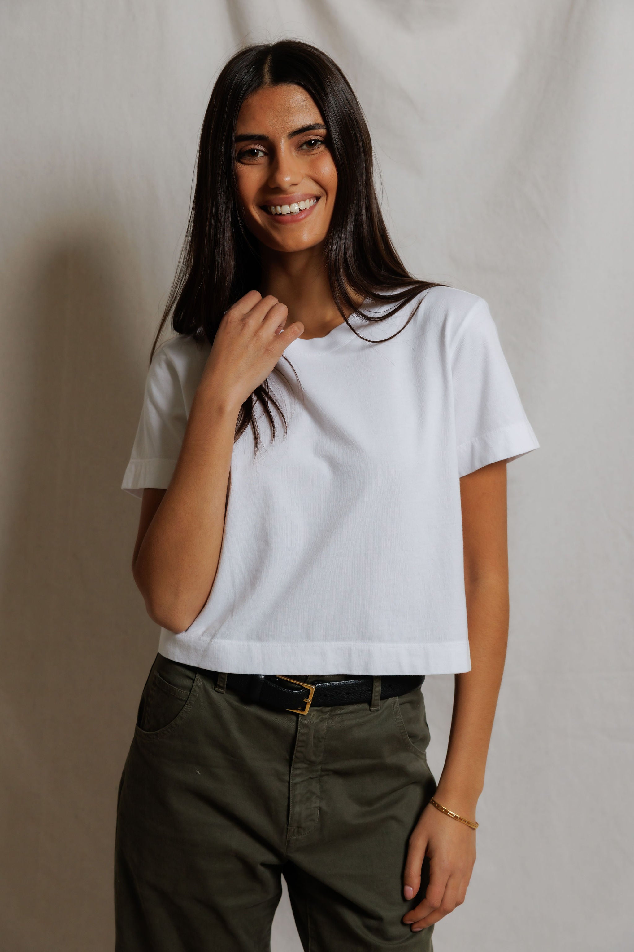we love nothing more than a tee with a detail. The cher tee fits close to the body but not too close. just enough. both the sleeves and the hem are clean finished with a wide banded stitch that gives your everyday tee that extra added detail. pair it with anything from denim to a long line skirt.