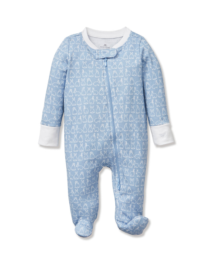 Petite Plume Pima Cotton Baby Romper in Blue Hoppy Days