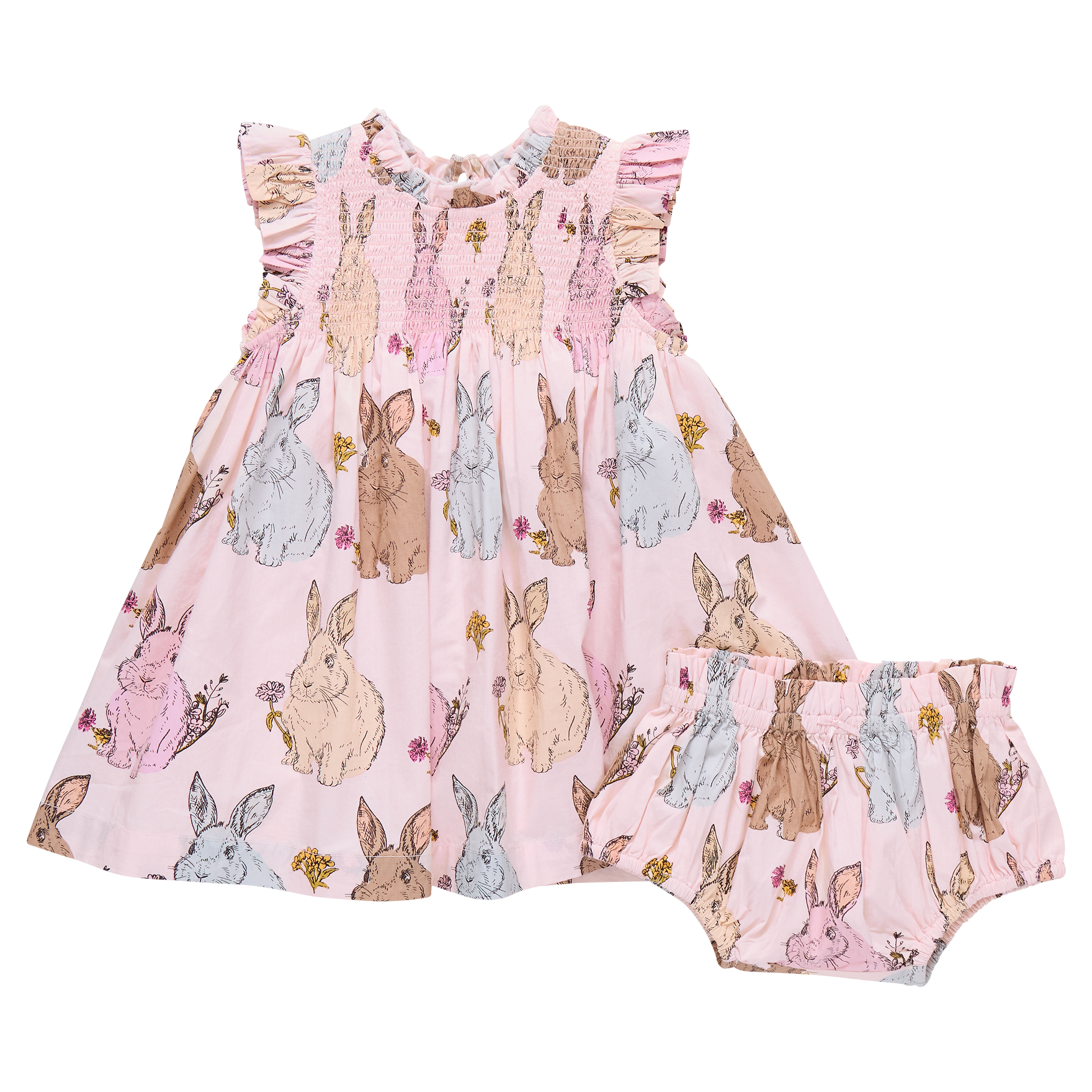 Pink Chicken Baby Stevie Dress Set in Vintage Bunnies