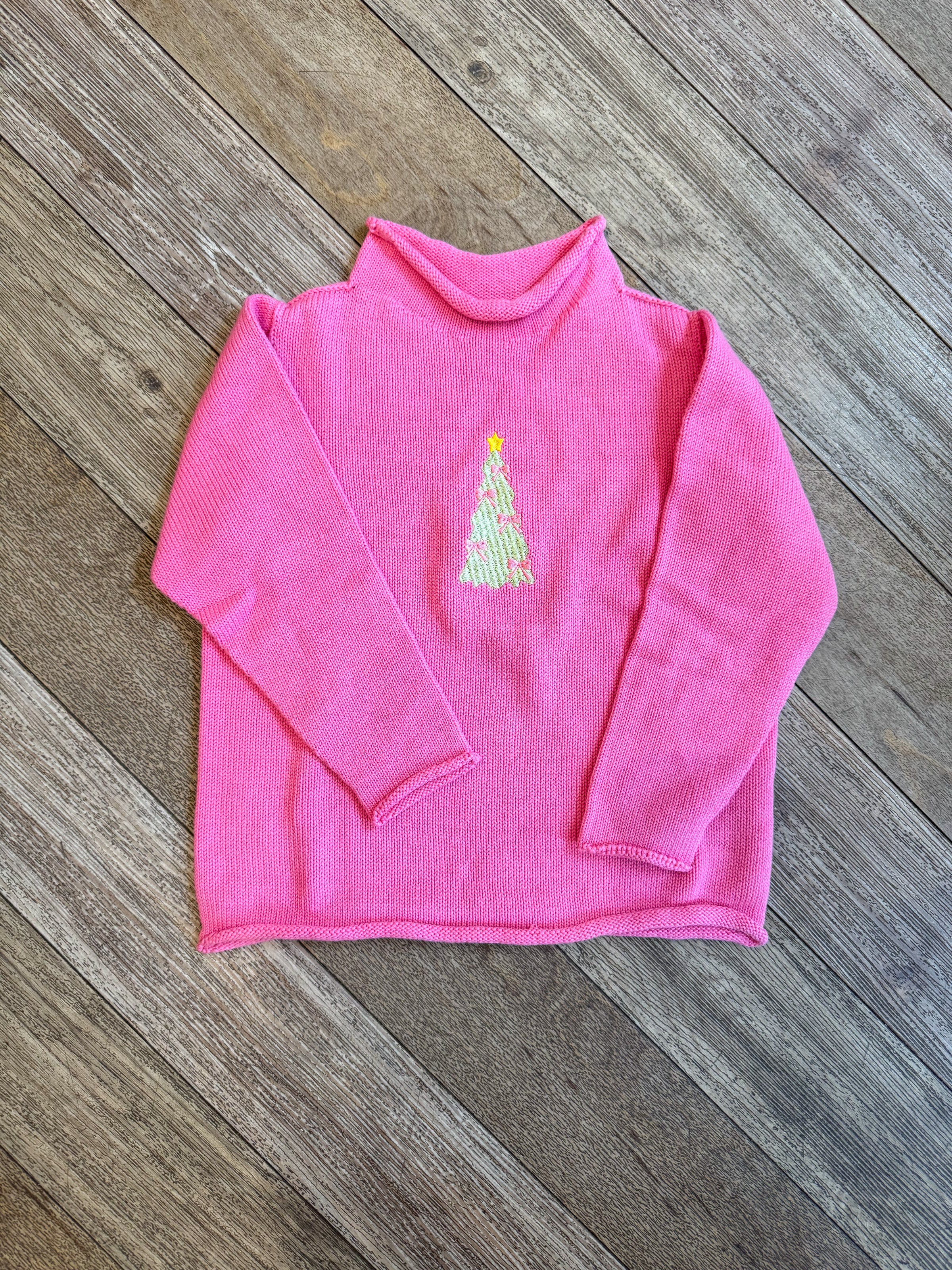 A Soft Idea Christmas Tree with Bows Roll Neck Sweater in Fuchsia