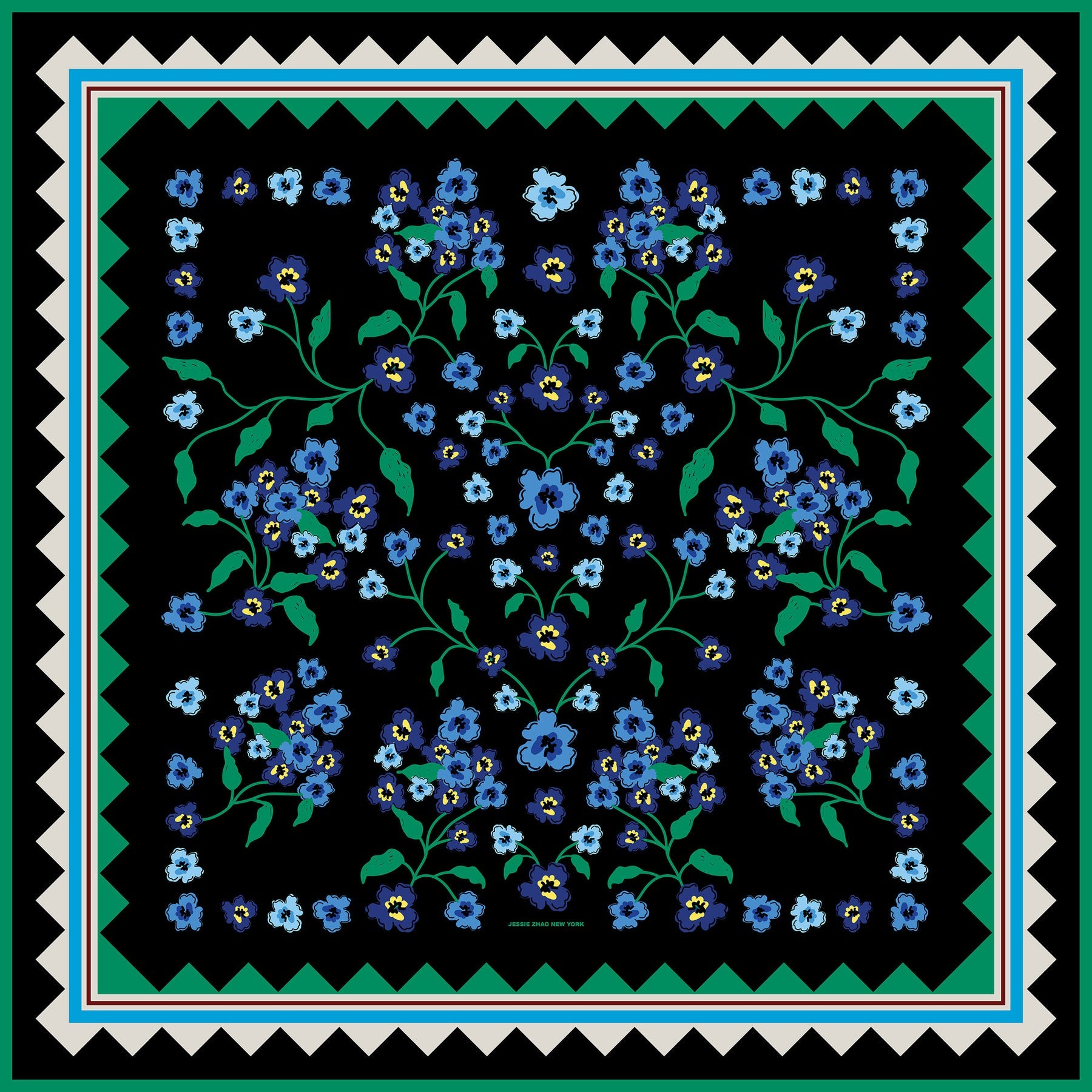 Jessie Zhao New York 25" Double Sided Silk Scarf Garden Nocturne