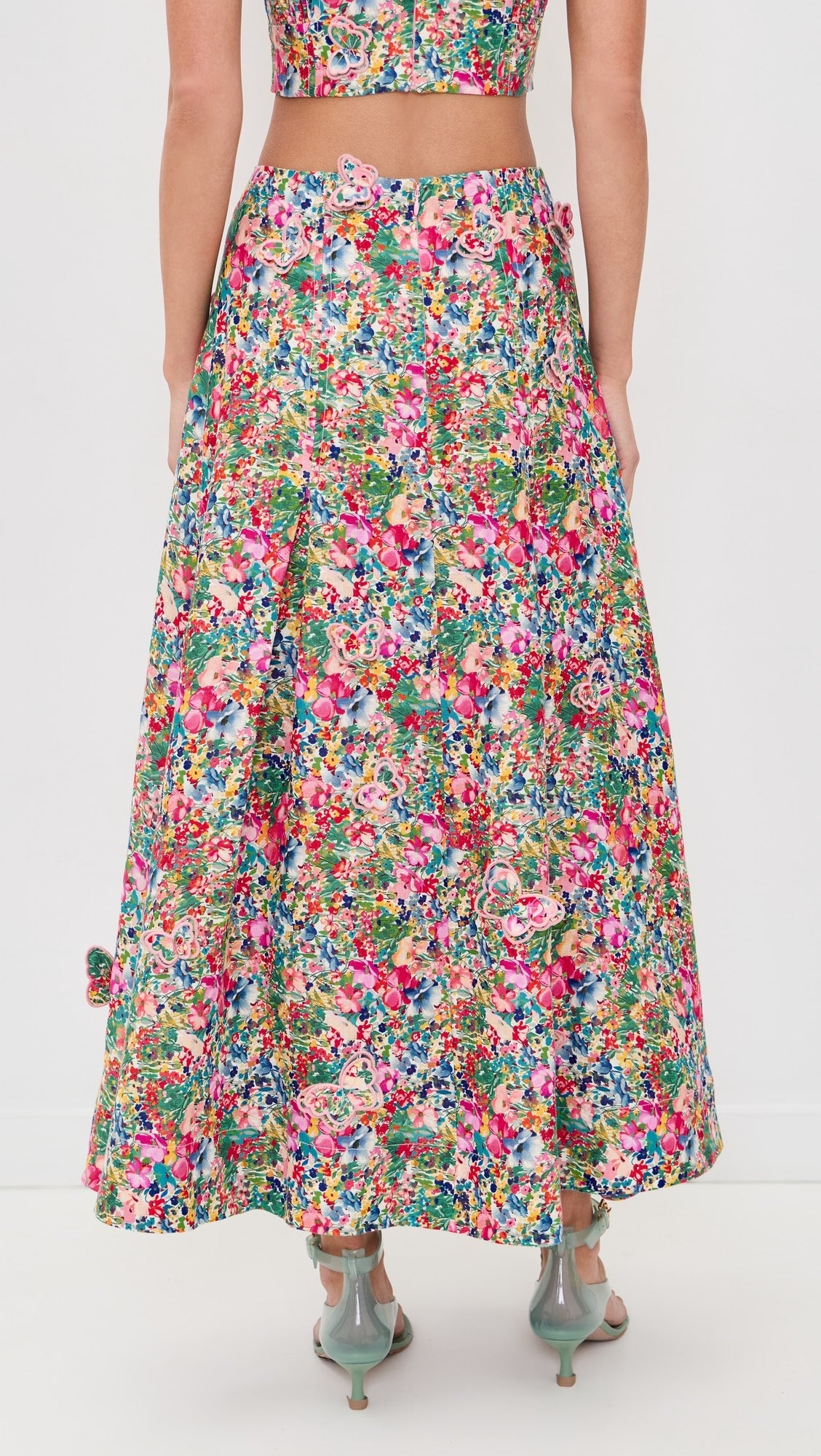 Farm Rio Peasant Floral Maxi Skirt in Off-White Butterflies