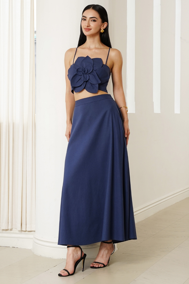 Light, fresh, and endlessly versatile. The Juki linen midi skirt is cut for a flattering drape, providing breezy comfort and a polished silhouette. A must-have for sunny days and versatile styling. As seen here styled with the Sahara Navy Linen Top.