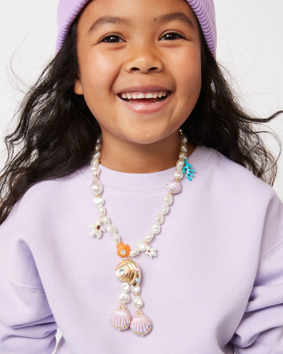 Just like Disney Ariel's collection of thingamabobs, this whimsical necklace is adorned with various seashells and pearls, creating a truly nautical masterpiece. It features not one, but two seashell lockets that open to reveal enchanting pearls inside, making it the perfect accessory for the ultimate mermaid at heart. It's like having a piece of Disney Ariel’s dazzling treasure trove right at your neck!
