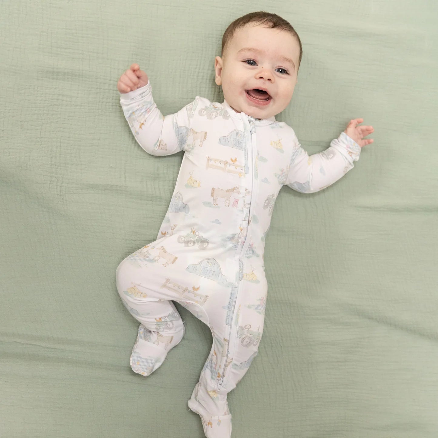 Angel Dear 2 Way Zipper Footie in Farm Animals Party