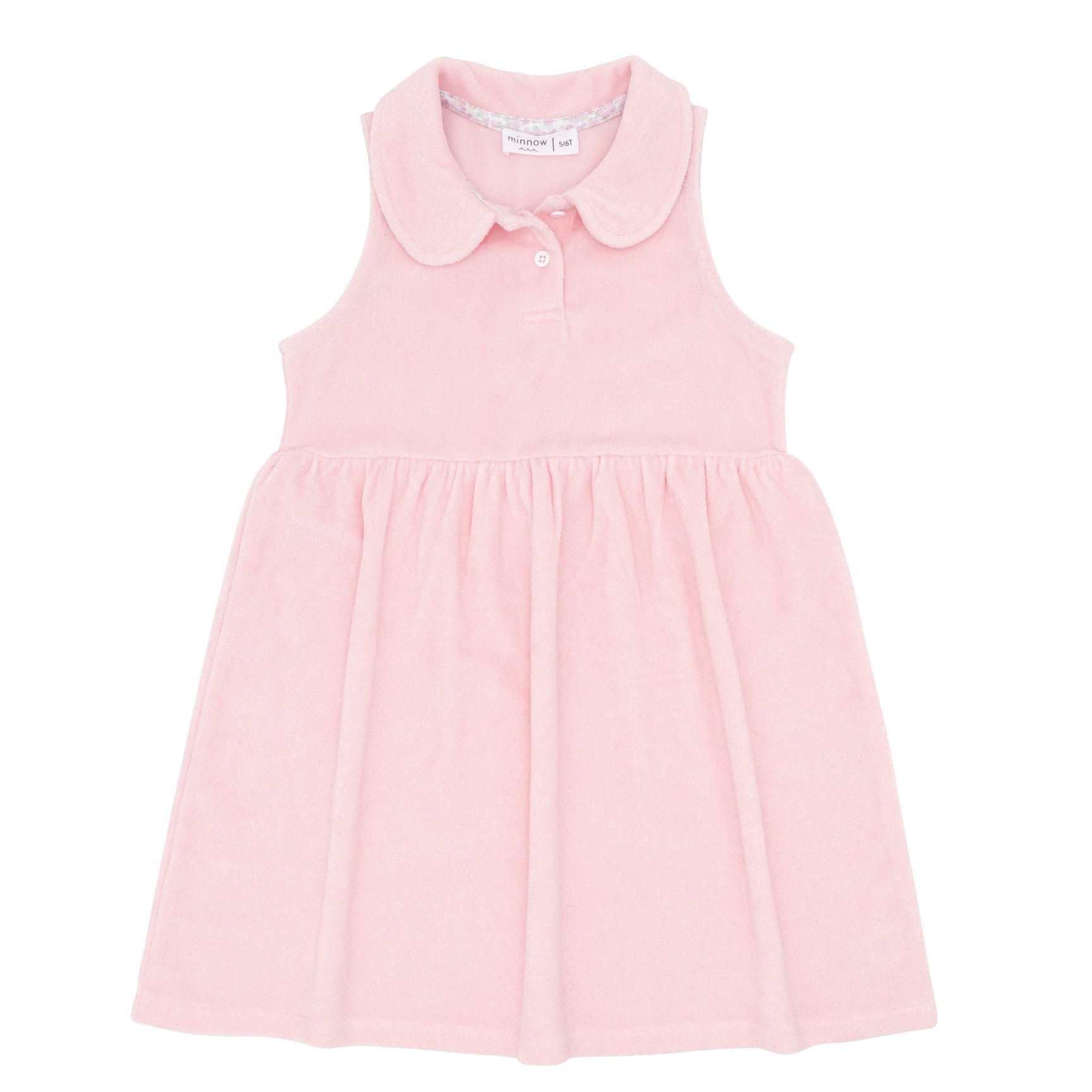 This classic swing tennis dress is as versatile as it is comfortable. The cozy french terry fabric in white is breathable and low maintenance, perfect for post-swim or playtime. The relaxed fit, button front, and gathered waist make it an easy, elevated staple that can take you from swim to play, all day!
