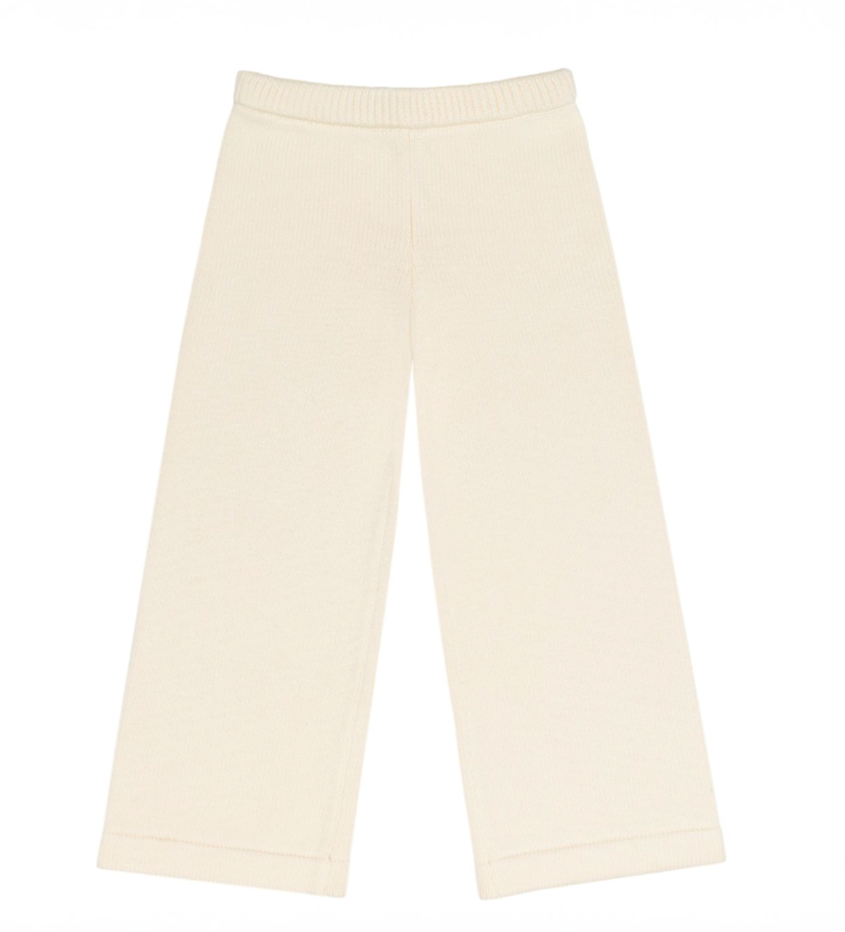 these cozy & ultra soft luxury knit pants are the perfect piece to throw over your minnow suit for an evening bonfire or après swim. made from natural cotton fibers known for their breathability and absorbency. this special piece stands up to wear and tear without sacrificing comfort. featuring unique rib detailing throughout with an elastic drawstring waistband and a slight flared leg. pair with the coordinating knit sweater or knit cardigan for a sweet lounge set your littles will never take off!