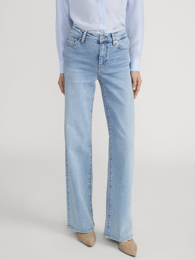 A FRAME introduction to the best-selling palazzo silhouette, this pair is designed with a flattering high rise, fitted hip, and subtle wide-leg flare that hits at the floor. Crafted from an ultra-stretch cotton blend for soft and comfortable wear.