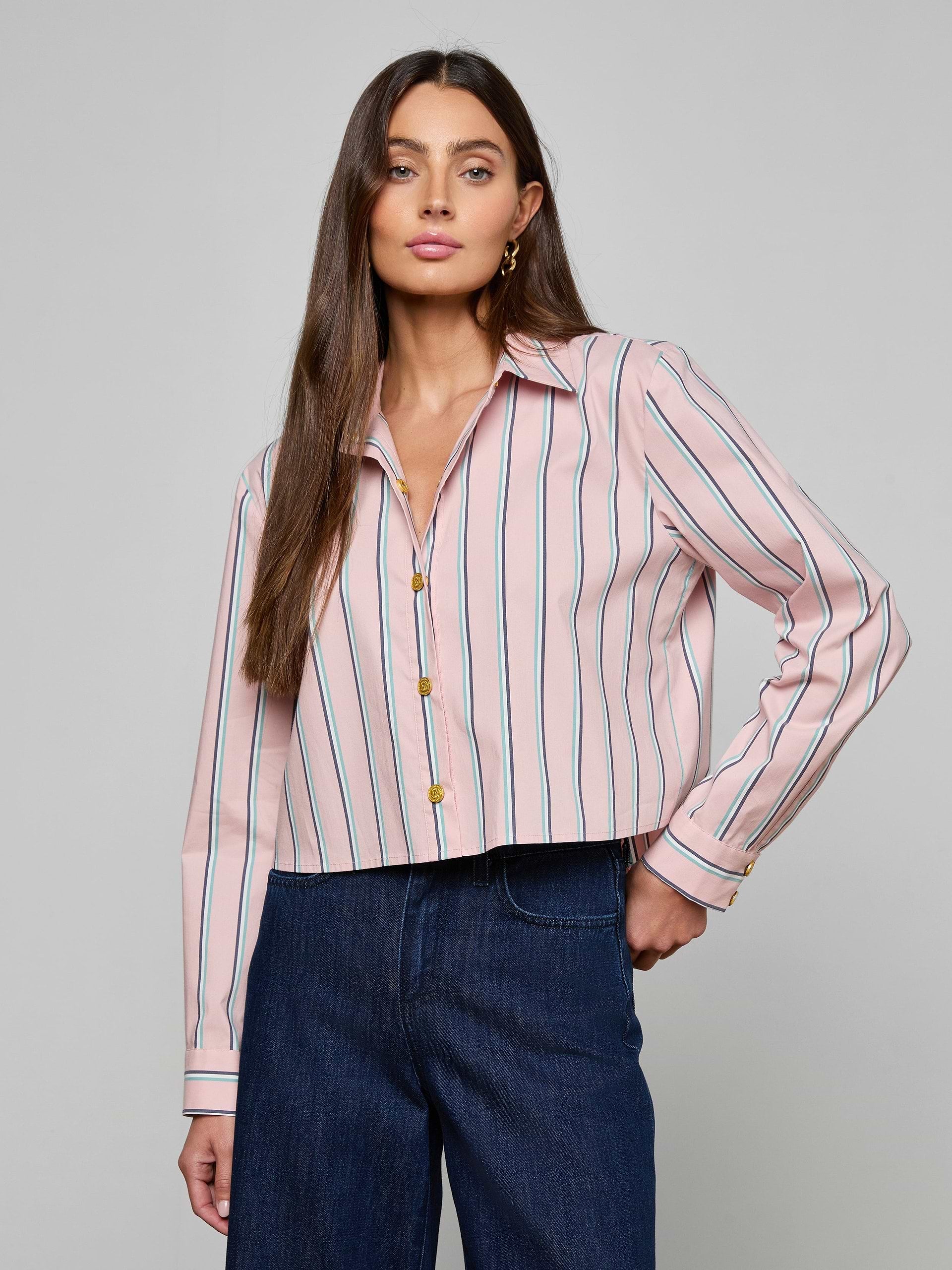 L'Agence Cosette Crop High Low Shirt in Pale Rose Stripe