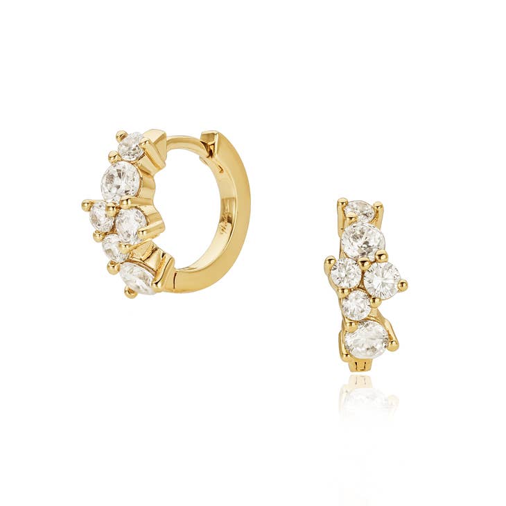 Add a little shine to your style with the Camry Huggies. The dynamic cluster of stones makes these a standout addition to your ear party.