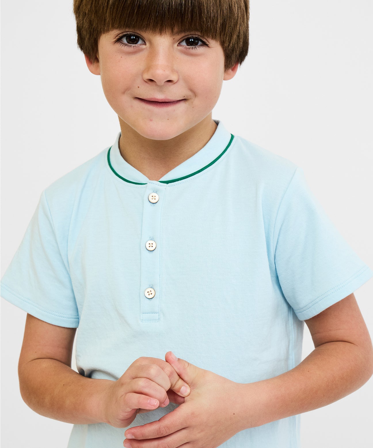 A short sleeve version of our Henley T-shirt made from 100% organic cotton and detailed with contrast piping at the collar. The perfect everyday tee for warmer months.