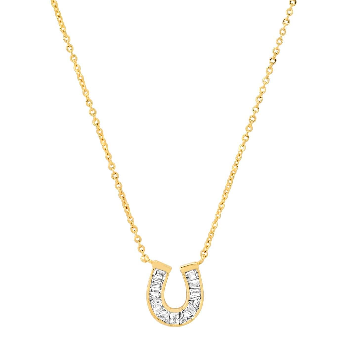 Showcase your style with Tai Jewelry's Baguette Horseshoe Necklace. This pendant/charm necklace is a striking piece, skillfully crafted to reflect the brand's commitment to high-quality fashion jewelry with fine jewelry finishing and details. Born and raised in Bangkok, Tai's unique designs have captured the attention of boutiques worldwide. This necklace is not just a piece of jewelry; it's a testament to the art of handcrafted jewelry and a support to the community of artisans in Thailand. Wear it as a symbol of style and solidarity.