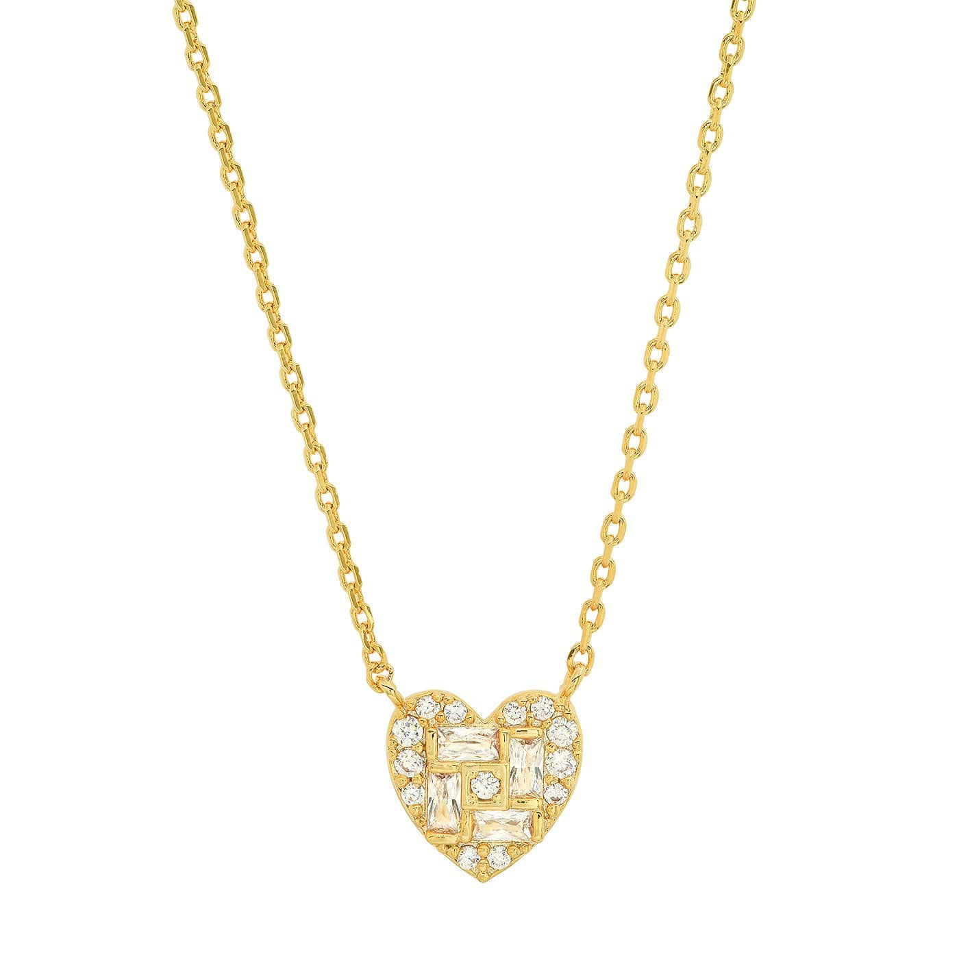 Our Heart Baguette Necklace with CZ from Tai Jewelry is an exquisite piece that effortlessly combines elegance and craftsmanship. It features a pendant charm design, a testament to Tai's roots in Bangkok. Each piece is meticulously crafted, reflecting the high-quality fashion jewelry with fine jewelry finishing and details Tai is renowned for. The Heart Baguette Necklace is a beautiful representation of the brand's commitment to supporting the fine artisans in Thailand, while adding a touch of global inspiration from the vibrant flea markets of Paris. Wear this necklace to add a touch of sophistication to your ensemble.